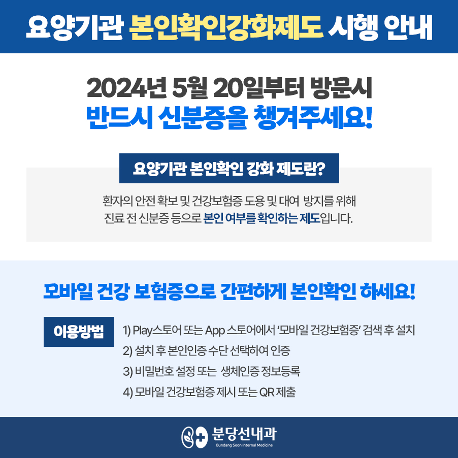 항상 사랑과 정성으로 환자를 진료하는 가장 친절하고 실력있고 신뢰받는 분당선내과가 되겠습니다.